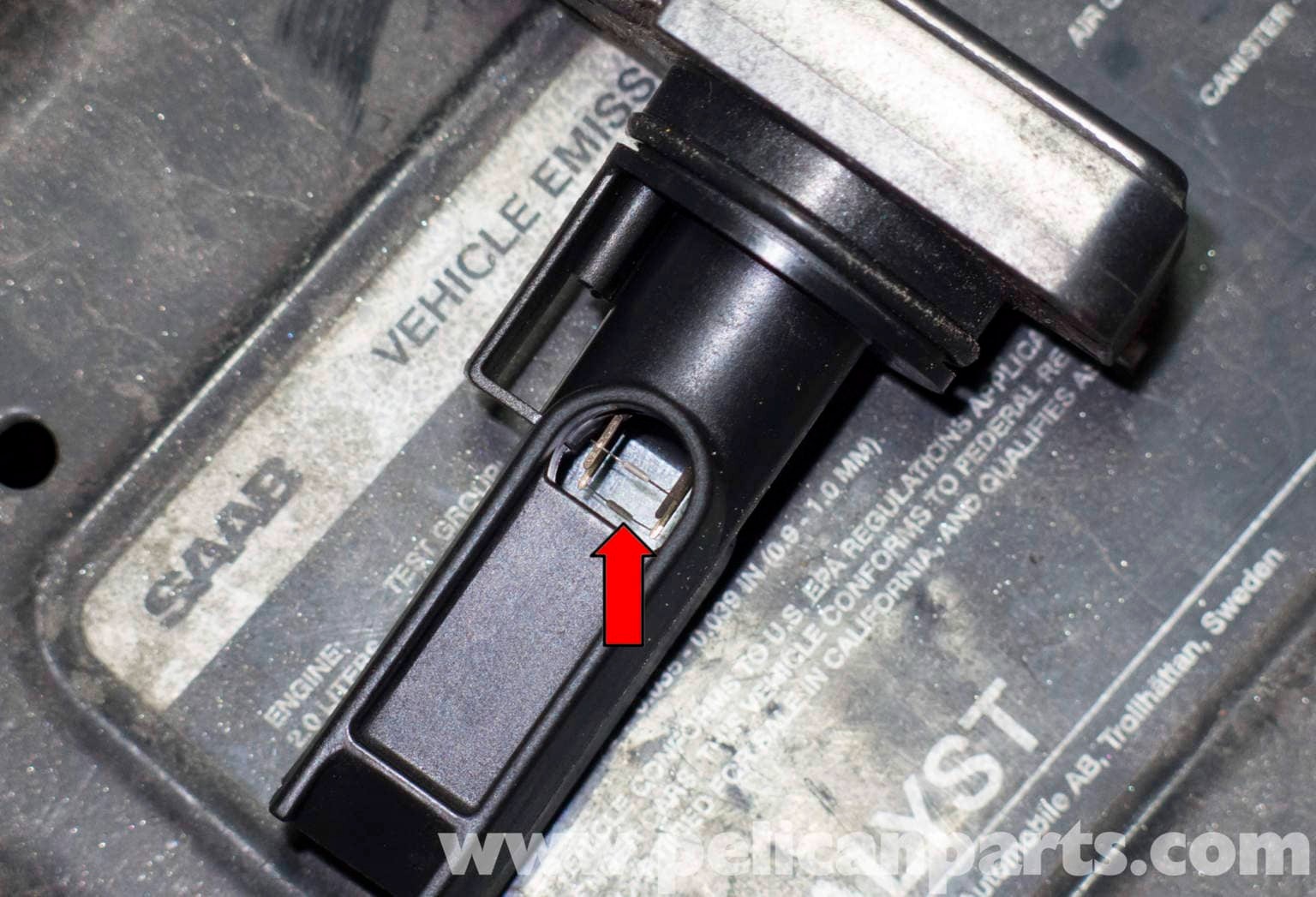 Hot Wire MAF sensor — the most common type in modern vehicles. The sensing element (visible through the window) measures air mass by detecting cooling of a heated wire.